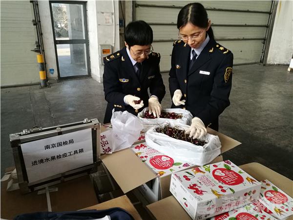 据悉,2017年南京口岸共进境新鲜水果11批, 22.391吨,与2016年相比进口批次、重量同比上升22.22%和62.32%,其中澳大利亚樱桃进口2.3吨,2017年新增加了进口品种,如澳大利亚油桃、葡萄、加拿大樱桃都是在2017年岸首次入境南京。