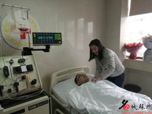 1月18日上午8:30--11:30,苏州吴中区甪直人民医院的团支部书记王旭在苏大附一院18号楼三楼进行采集,2017年3月14日他为一名北京的白血病患者捐献了造血干细胞,现在由于患者有复发可能,他再次为患者捐献外周血淋巴细胞。