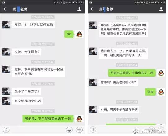 据知情人透露说,小柔非常单纯,之前也没有恋爱经验,由于学习国学,对老师特别尊重。周斌曾挑拨过小柔与宿舍同学的关系,因此小柔与同学相处得并不好。她很害怕,不敢和别人说,加之周斌对她有表白的情节,她反而对周斌产生了依赖心理。