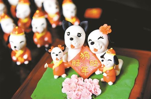 狗年春节将至,徐州市面塑艺术家朱月香精心创作了生肖狗系列面塑艺术品,包括300只汉服狗和一组“全家旺旺狗”。