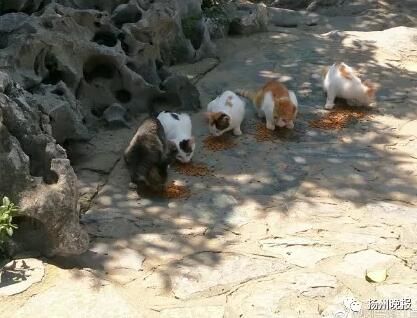 记者昨在瘦西湖静香书屋、长堤春柳等多个景点看到,这些地方都有数量不少的流浪猫。景区安保人员介绍,根据他们巡查记录,景区的流浪猫数量有上千只,“像冬天,只要天晴,在景区里,很多地方都能看到流浪猫晒太阳。”