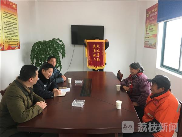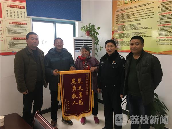原来,2017年12月30日上午10:00,扬子公交六合公司镇村车队453线司机俞青燕在草塘村北公交站打扫车辆卫生时,救下了意外落水的余正芳老人。六合公司安保科得知此事后为勇救落水老人的俞青燕同志及时申报了南京市见义勇为嘉奖。俞青燕救人事迹还受到《南京日报》、《扬子晚报》、《现代快报》、《澎湃新闻》等众多媒体争相报道,在社会引起广泛关注。1月23日中午,被救助的余正芳老人特地制作一面锦旗送到六合公司镇村车队,她拉着俞师傅的手一个劲地感谢他。侯警官对俞青燕勇救落水老人之举给予了高度肯定,并号召公交员工都要向俞青燕师傅学习,传递社会正能量。侯警官还对六合公司在以往的工作中涌现出众多见义勇为的事迹表示了赞许,对公司在教育员工见义勇为的工作方面给予了高度评价。俞青燕表示自己的工作成绩离不开公司和车队的教育,以后的工作中自己还会一如既往地帮助别人。
