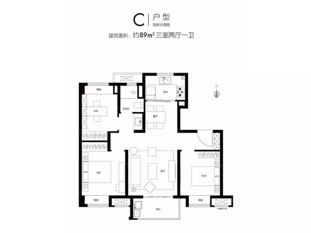 89㎡3室2厅1卫↓↓↓