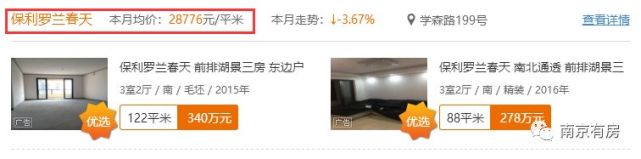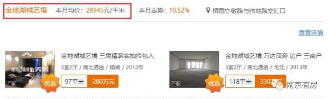 365淘房二手房网站显示,仙林湖的金地湖城艺境二手房挂牌均价已经达到28945元/㎡,保利罗兰春天二手房挂牌均价也达到28776元/㎡,华侨城翡翠天域的精装新房比仙林湖二手房便宜了3000元/㎡。
