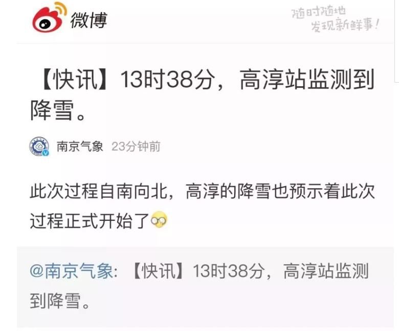 下午1点40左右,南京高淳观测到雪情。2点,溧水区开始下雪。