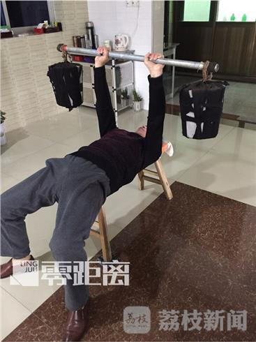 除了拍酒瓶,颜程涛向记者表演了脑后卧推杠铃等常人难以做到的动作。当地人说,渐渐的,颜程涛在当地武术圈子也开始小有名气,被人叫为武痴。那这名丹阳的武痴怎么会和北京的搏击狂人徐晓冬发生联系呢?颜程涛说,他起初到北京是想找昆仑决谈赛事合作的,工作人员告诉他,现在北京徐晓冬最厉害,他就上门找到了徐晓冬。