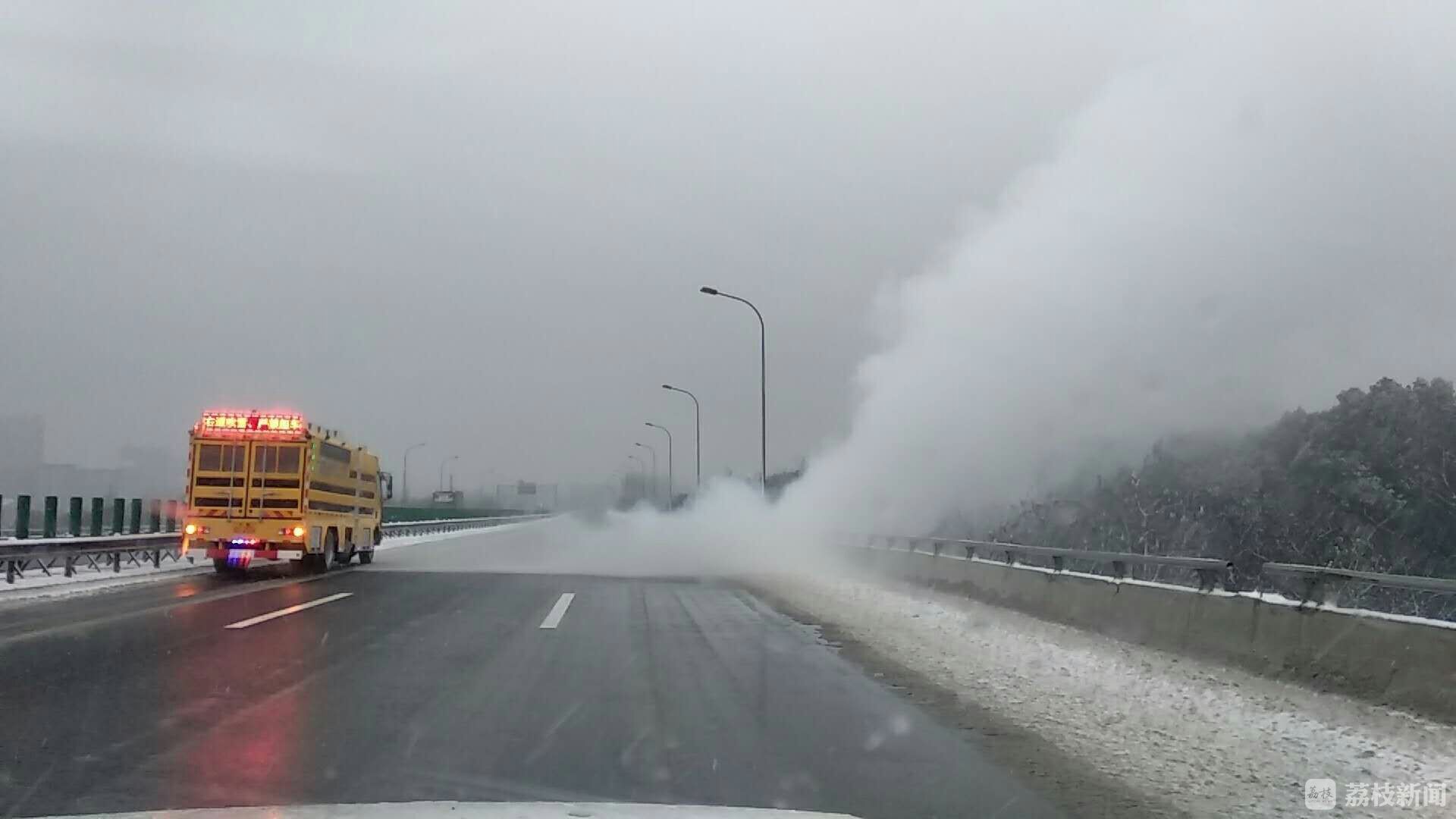 扬溧高速利用路面热再生施工加热设备,在严重冰冻情况下,可以对路段易结冰大型桥梁桥桥面实施红外线加热融冰;江阴大桥、宁杭高速利用以大功率航空发动机为核心部件的吹雪车,在昨夜今晨雨雪天气下利用高温高压气体对江阴大桥路段实施“快干”作业。