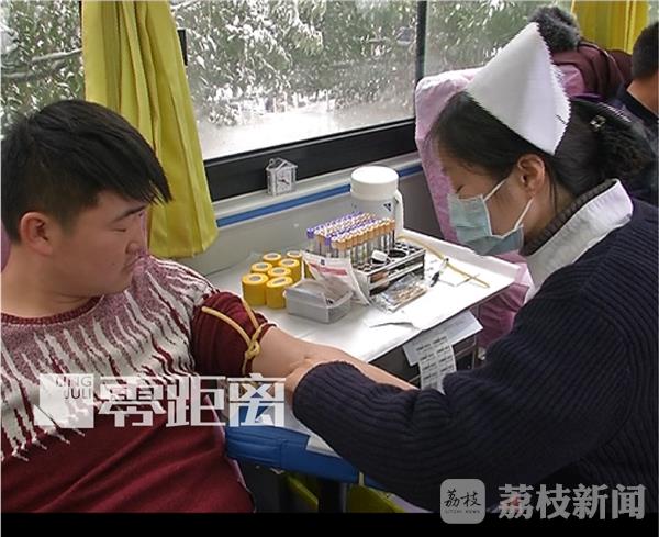 今天外面下着大雪,为了方便大家献血,南京红十字血液中心特别安排了一辆采血车,到公司附近采血。50多人在血液检查合格后,迫不及待地上车献血。血液中心的工作人员表示,每年的1、2月份都是血源紧缺期,正需要大家积极献血。
