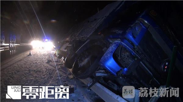 就在交警巡逻到大丰收费站南三公里处,有一辆大货车驾驶员发现前面一辆大货车因路滑撞上护栏,他也立即刹车也因路滑发生侧翻,交警立即下车指挥过往车辆减速慢行,又把驾驶员安置在高速护栏外面,保证驾驶员的安全,并调来清障车快速的清理事故车辆确保畅通。