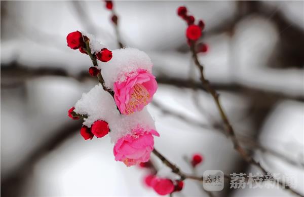 昨夜今晨的一场降雪扮靓了句容城乡大地,在句容原镇江农科所内,一株株红梅在雪中含苞待放,犹如一幅红梅迎春图,带来别样的韵味。