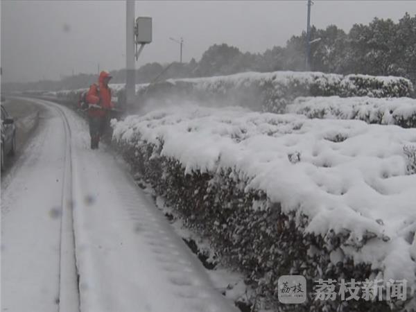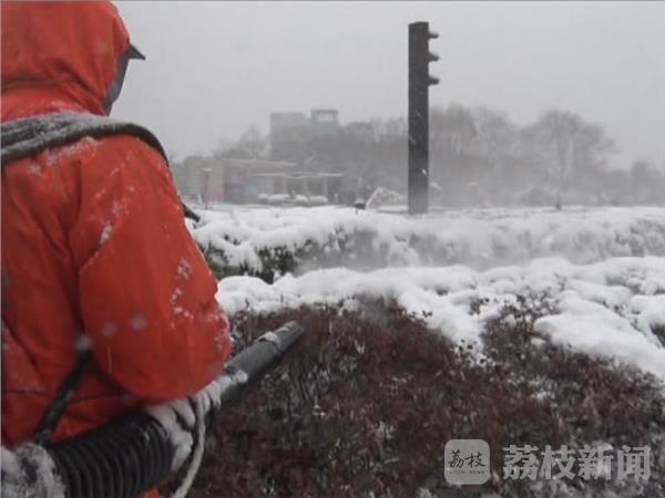 今天在江宁区高新园,园林工人也使用了这个除雪小神器,效果不是一般的好。在江宁区高新园弘景大道上,有园林工人背着森林防火用的风力灭火机,对道路中间的绿化带进行除雪,效果杠杠的!只见喷嘴喷过的地方,厚厚的积雪被吹得干干净净。