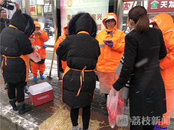 环卫工人们连夜清扫积雪,让江宁道路干净了许多,而面对环卫工人的辛苦,小厨娘饭店的厨师们也一早来到了店里,亲手熬制鸡汤,希望热乎乎的鸡汤能带给环卫工人们无限的温暖。今天早上8点半,在某饭店,工作人员正在将刚刚熬好的鸡汤装进保温箱,将鸡汤送给辛苦清扫积雪的环卫工人和小区物业人员。