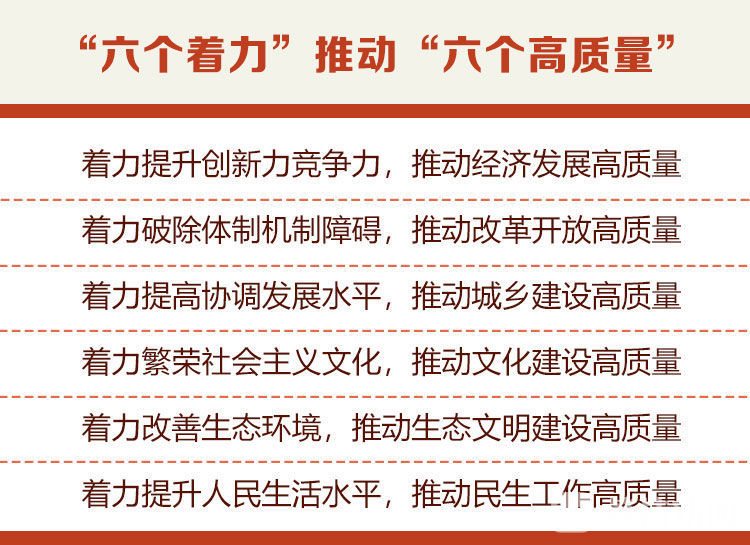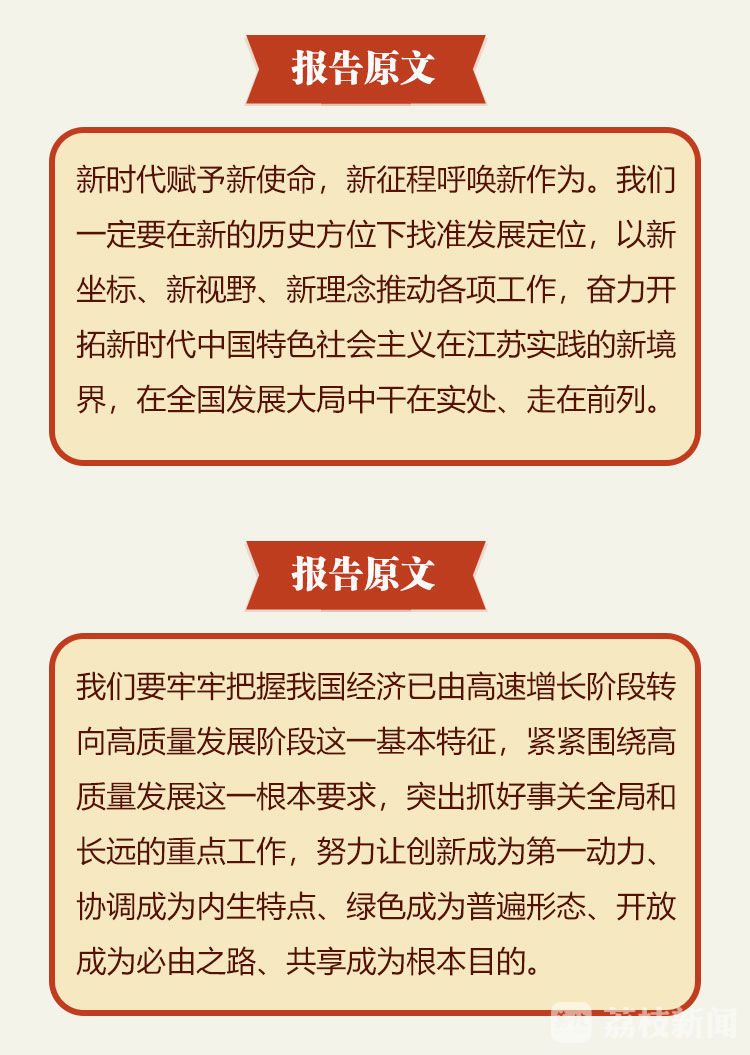 报告关于今后五年的奋斗目标和具体部署,是按照江苏省第十三次党代会提出的“六个更加”(编者按:经济发展更高质量、人民生活更加幸福、生态环境更加优美、文化发展更加繁荣、城乡区域更加协调、社会治理更加完善)和省委十三届三次全会提出的“六个高质量”(编者按:经济发展高质量、改革开放高质量、城乡建设高质量、文化建设高质量、生态环境高质量、人民生活高质量)要求,进一步细化、具体化,落实为政府工作举措。