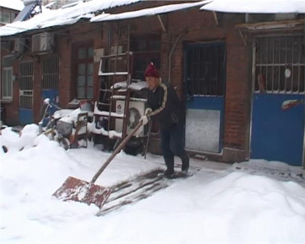 市民苏老爷子今年快七十了,他一大早就带着自己特制的大铲子前来除雪,苏大爷说,自己虽然不是这小区的,但是自己喜欢起早,看到社区的工作人员在这扫雪,自己就主动过来了,我看好多年前轻人还没起来,我们年龄大了,也发挥点余热,把雪打扫干净,防止有人摔倒,方便居民出行。有市民刚刚起床看到这样的一幕,不住地道谢,赶紧把工具夺过来,自己动手干一会。