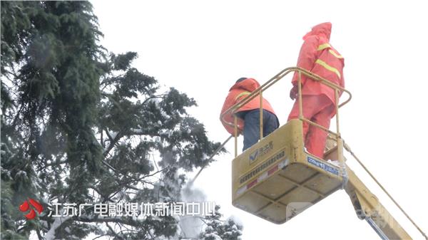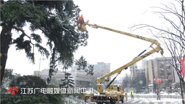 南京街头行道树,三分之一是常绿树种,香樟、广玉兰、女贞、雪松这四类树木极易被积雪压断,由于除雪及时,到目前为止,除了极少树木伏倒,断肢断膀的枝条也得到及时清理。