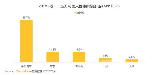 该运营负责人刘婧表示:今年12月份,《2017年双十二专题行业洞察报告》继而显示:在母婴人群使用综合电商APP排行榜中,贝贝网以渗透率4.6%的成绩位居第四,天猫则已3.5%的成绩排名第五。