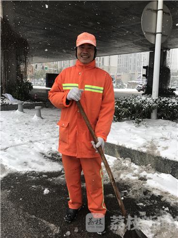 他告诉记者,因为扫雪流汗受了凉,腰部酸痛,贴了两片膏药。由于雪下的大,只能坚守在岗位上。而且,所有的环卫工人都坚守在岗位上。尽管辛苦,但是他的笑容很灿烂。