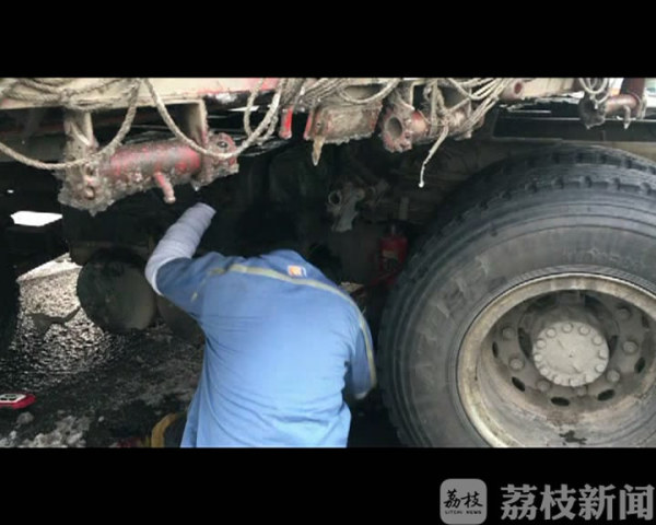 经询问挂车司机得知,当时女子骑车电动车在机动车道上行驶,由于隔天刚下过大雪道路结冰有积雪,导致女子不慎连人带车滑倒,半挂车司机发现后,未避免撞到该女子,采取紧急刹车措施,道路湿滑加之在惯性的作用下,挂车尾部向右侧甩出,将被困女子卡在挂车尾部与路边护栏中间。