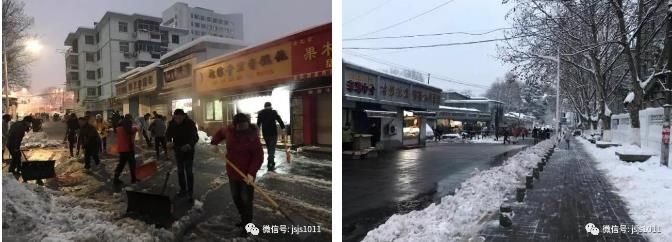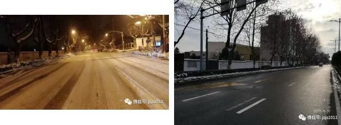 同一条道路,凌晨4点大家扫雪,早上6点,干干净净