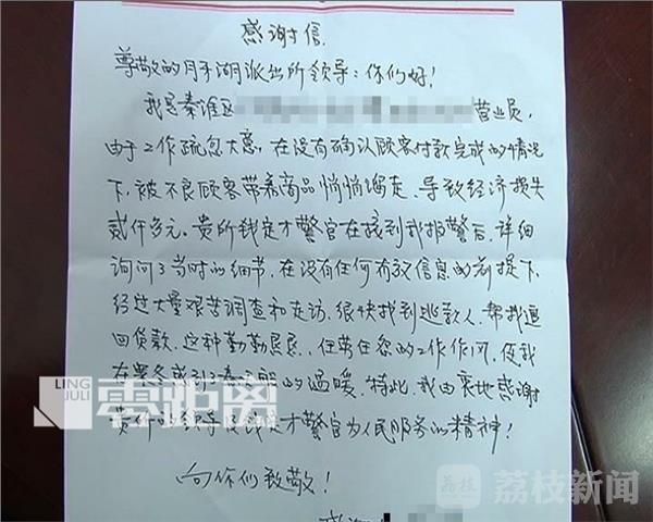 1月27日上午,南京城飘着大雪,市民王女士专程从马群赶到了月牙湖,她要到派出所送一封感谢信。她说,这事值得她大雪天跑一趟。