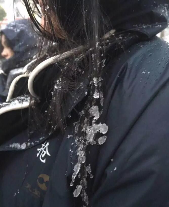 这是一位美丽的城管姑娘,在扫雪过程中发梢已经结冰,这样的光芒胜过无数钻石。