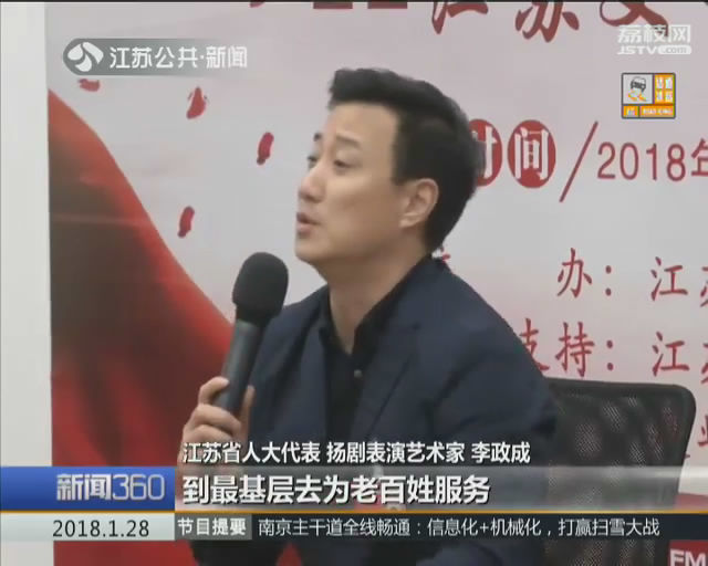 江苏省人大代表、扬剧表演艺术家李政成说,文艺工作者应该到最基层去为老百姓服务,下次有机会自己一定要去南京的基层。
