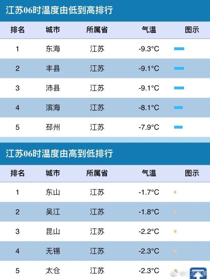 据江苏气象,今日6点全省最高东山-1.7度,最低东海-9.3度!所以,这就是山和海的距离!东山和东海,你在这头,我在那头!