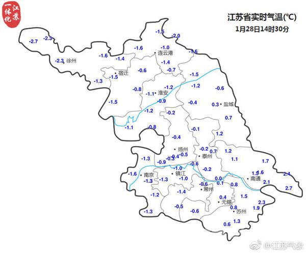 江苏省气象台未来几天详细天气预报:28日夜里到31日天气晴好;温度持续偏低。全省今天夜里阴转多云,明天晴到多云,全省偏北风4级左右,明晨最低温度: 淮北和淮河以南西部地区-7℃左右,其它地区-4~-5℃,全省大部分地区有冰冻,明天最高温度:本省西南部地区0℃左右,其它地区2~3℃。
