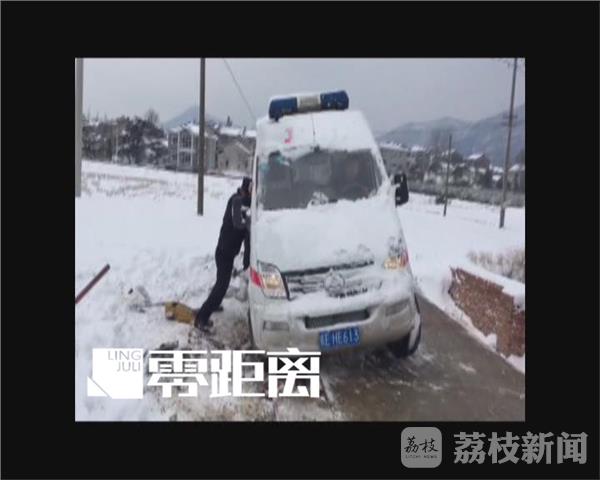 这辆救护车因送一位病人,从南京返回贵州兴义时,车子陷进了雪里。当时南京江宁横溪派出所的民警,正好在附近区域扫雪,得知情况后,立刻抽调车辆和人员,赶往现场前去救援。由于救援车没法开到现场,在场的民警和警辅,硬是徒手将车子从雪中给“拽”了出来。