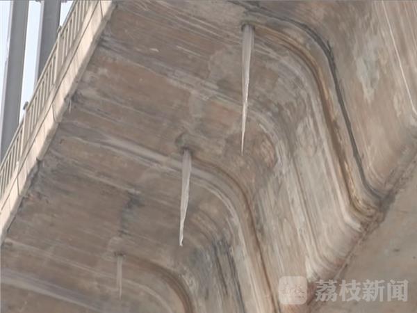 今天早上,记者沿宁杭高铁巡视,发现双麒路旁边高架下冰棱现象比较严重,远远望去,高铁高架桥一溜边全是长长的冰棱,长度有的超过一米,直径超过成人的胳膊,这些冰棱悬在2、3十米高的高架桥底部,就如一把把寒光闪闪的利剑,底下经过的市民无不胆战心惊。这又尖又重的家伙,真要砸到人,后果难以想象,记者随后来到宁杭高速公路江宁区高新园段,发现这种情况也很严重,冰棱悬的虽然没有双麒路高,但104国道上方这种冰棱很多,记者随后联系了江宁区高新园城管局,对方称他们今天一早就意识到这个情况了。