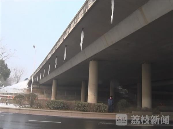 一场大雪过后,严寒继踵而至,雪水经过夜里的寒潮,都结成了冰块,一些高架桥因为不接地气,结冰情况更为严重。有的高架桥融化的雪水还结成长长的冰棱,随时会掉落下来砸伤行人,对于此种情况,江宁区城管部门及时巡视,排除险情。