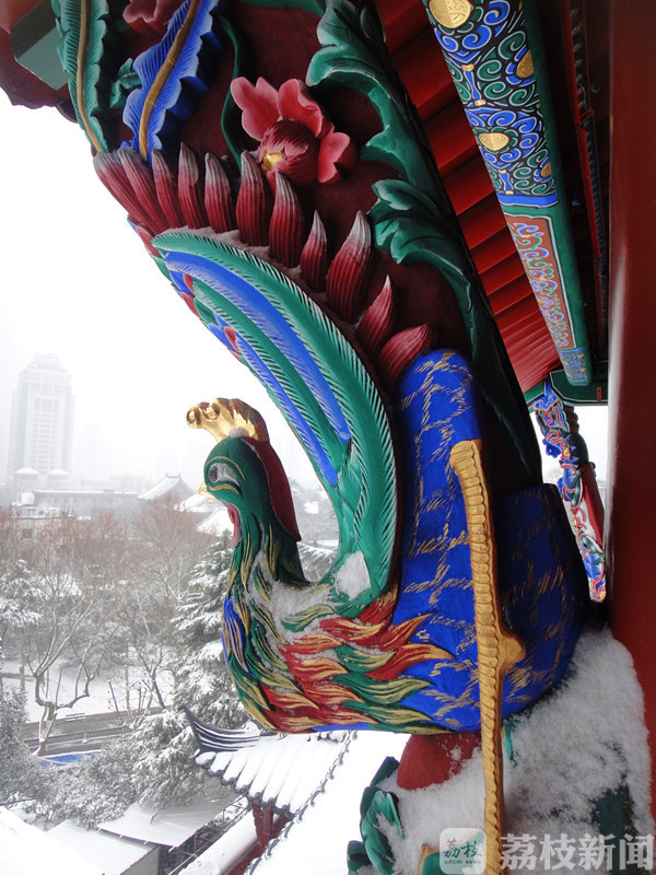 大雪初霁,今天(1月29日)早上8点,荔枝新闻网友迎着朝阳来到位于南京市中心的鼓楼公园探访。