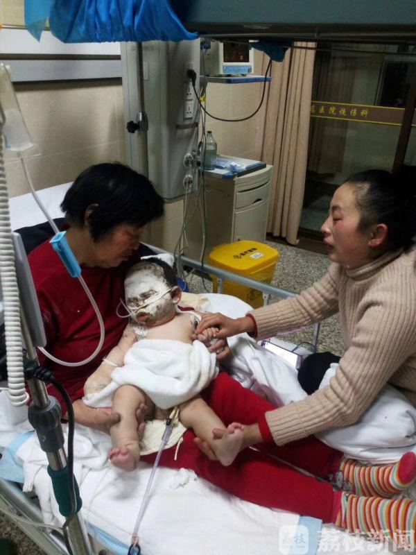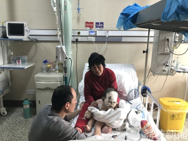 丁丁的爸爸和妈妈为了补贴家用,一直在外打工,丁丁一直由奶奶照看,当得知丁丁被烧伤以后,丁丁的爸爸妈妈赶紧从打工的地方赶到了安徽宿州的家,因为当地没有治疗条件,一家人把丁丁送到了徐州仁慈医院治疗。