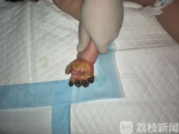 据徐州仁慈医院烧伤整形科的董亮医生介绍,丁丁被烧后4.5小时才被送到医院的,烧伤创面位于头面部、双耳及右手,属于特殊部位烧伤,烧伤总面积约15%,其中深二度创面3%,三度创面12%。“当天情况十分危急,因为伴有吸入性损伤,孩子的鼻腔、口腔、咽部可见浓稠分泌物,有明显的烧伤后休克表现,随时可能发生呼吸困难、窒息可能。得知是5个月28天的婴儿特重度烧伤的时候,我自己都很紧张。”董亮说。
