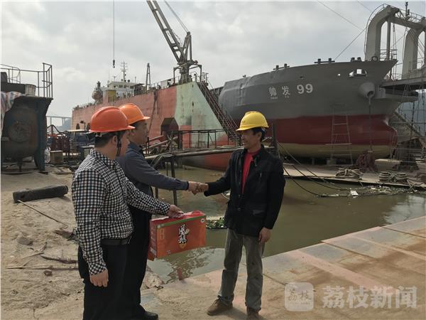 1月25日,验船师肖向锋一行奔赴珠海对该船进行全面检验,帮助船东将船舶不合格的地方进行整改,确保船舶安全营运。临行前,验船师把连云港老家特产“凤鹅”送给船东耿先生,让过年不能回家的船民们尝到家乡的味道,耿先生激动地握住验船师的手连声感谢。