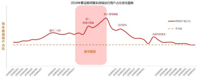 ↑图9 2018年春运期间驾车跨城出行用户占比变化趋势