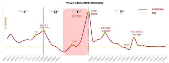 2018年春运预计春节节前有一个返乡出行小高峰(腊月二十四、腊月二十五),春节假期最后一天(正月初六)为整个春运期间流量最高峰,春节节后还有两个返程小高峰(正月初九、初十,正月十六、十七)。