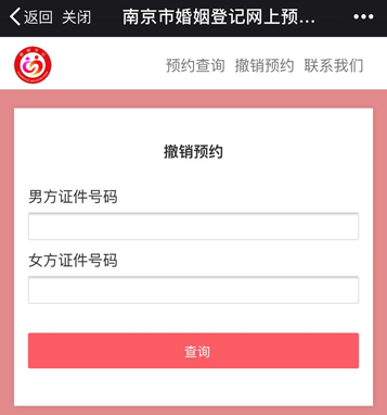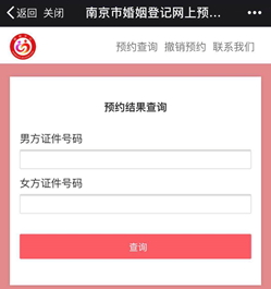 点击“预约查询”,输入双方证件号码,即可查看预约信息;