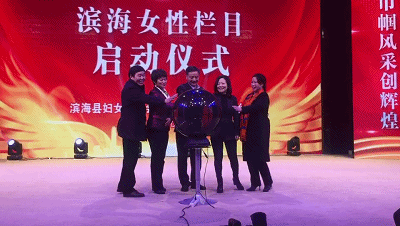 (中共滨海县委常委、组织部长徐亚,滨海县政府副县长、县妇儿工委主任程熙,盐城市妇联副主席洪磊,滨海县妇联主席高亚国,滨海县电视台台长刘晓明共同按下启动球)