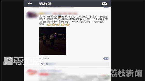 据了解,老人当晚来大剧院进行文艺演出,演出结束后,他在走楼梯时,不慎滑倒,摔了下来。辅警葛山河的暖心举动被路过的市民记录了下来,画面上传到网络之后,很多市民和网友被他的行为感动,纷纷为他点赞。