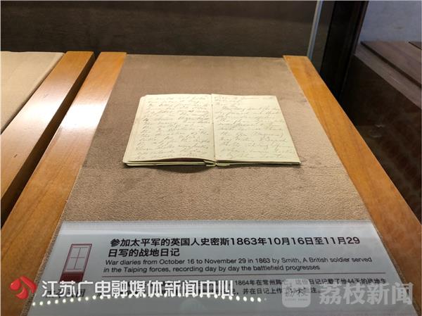 太平天国运动还吸引了不少“洋兵洋将”投身其中,据史料记载,参加太平军的外国人约有数百人,他们分别来自欧洲、美洲、澳洲等地。此次展览首次展出了炮火队长、英国人史密斯的战地日记原件,在日记中,他驳斥了外界对太平天国的诬蔑。“英国人史密斯是太平天国慕王谭绍光的部下,1863年10月16号到11月29号,他在日记中记录了44天战地作战的情况,后来他在1864年常州保卫战中牺牲。”南京市博物馆综合业务部副主任毛晓玲说。