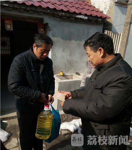 2月4日上午,泰州市妇联干部、泰州市人大代表以及泰兴市政协委员一行14人在泰兴市黄桥镇南街社区党支部书记宫龄寿带领下冒着严寒深入贫困户、空巢老人、低保户以及老党员的家中开展扶贫“暖冬行动”,为贫困户等送去了大米、白面、食用油等慰问品,并为每户送上慰问金。