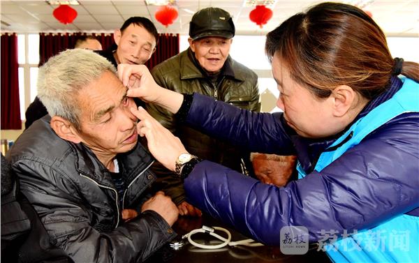 2018年2月6日下午,江苏省仪征市真州镇茶篷村真州敬老院,来自真州社区卫生服务中心的家庭医生,正在为在院孤寡老人检查口腔卫生。