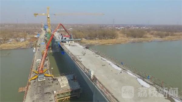 经过一年多的努力,连淮扬镇铁路的关键节点,五峰山过江通道北引桥的夹江大桥,2月6日正式合龙,为后续铁路全线和五峰山过江通道的施工打下了坚实基础。