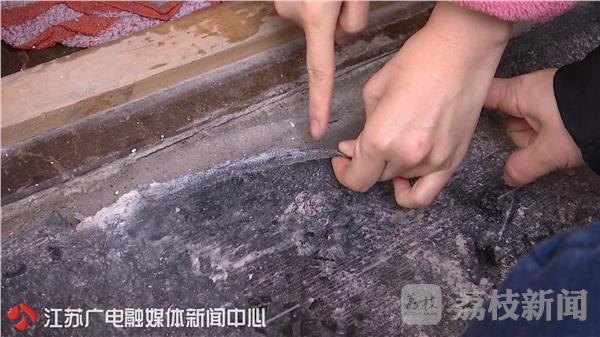 芳草园小区12号701室住户:“你看这个里面还粘住啦,根本就没粘住。”