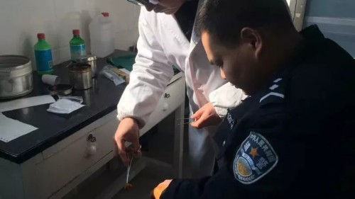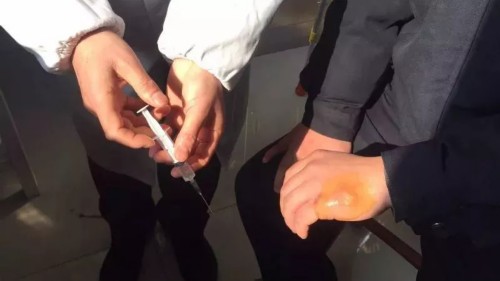 回到所里,宗凯准备脱下手套,然而手套像粘住了什么,火辣辣的疼痛感瞬间涌上。同事小心的将宗凯的手套剪开后,半个手掌大的血泡露了出来。