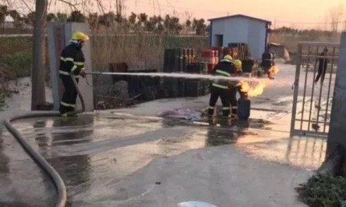 随后他们又对罐身喷水降温,并用湿抹布盖住火舌灭火,再用水枪对泄漏煤气进行稀释……