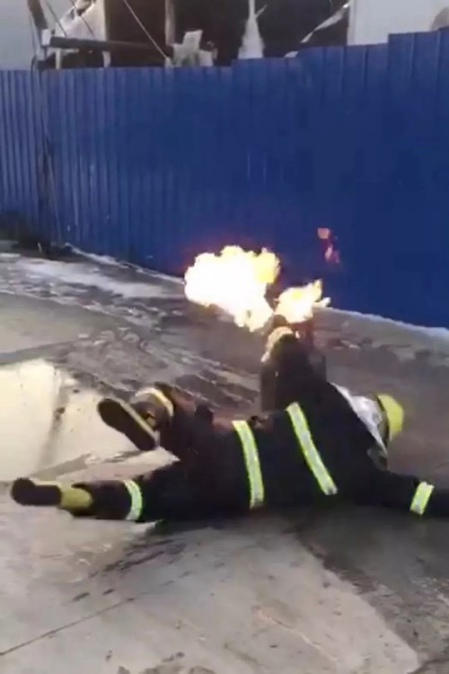 因为雪后天寒,地上的冰还没有化开,宗凯刚把煤气罐放置外面地上就跌了个大跟头。他赶紧起身,再次进入火场。