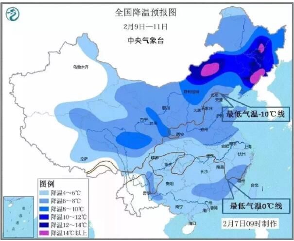 中央气象台已于2月8日发布寒潮预警: