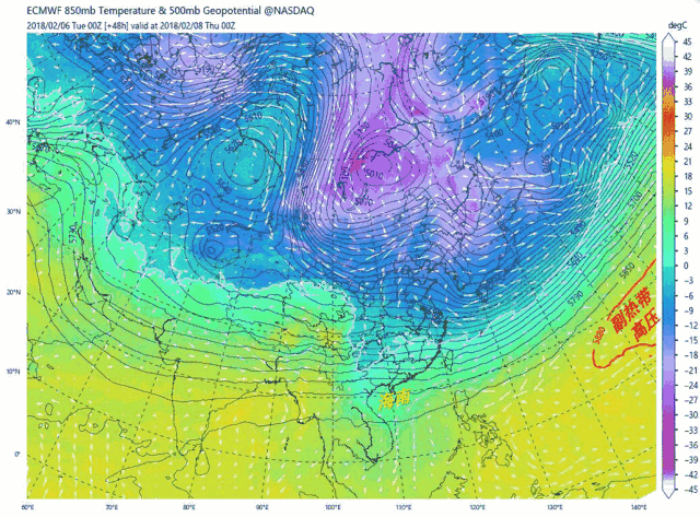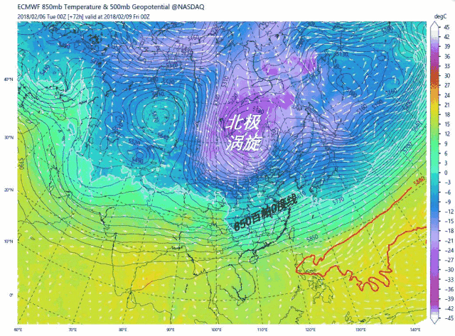 △寒潮南下示意图,中国气象爱好者根据ECMWF公开数据制作